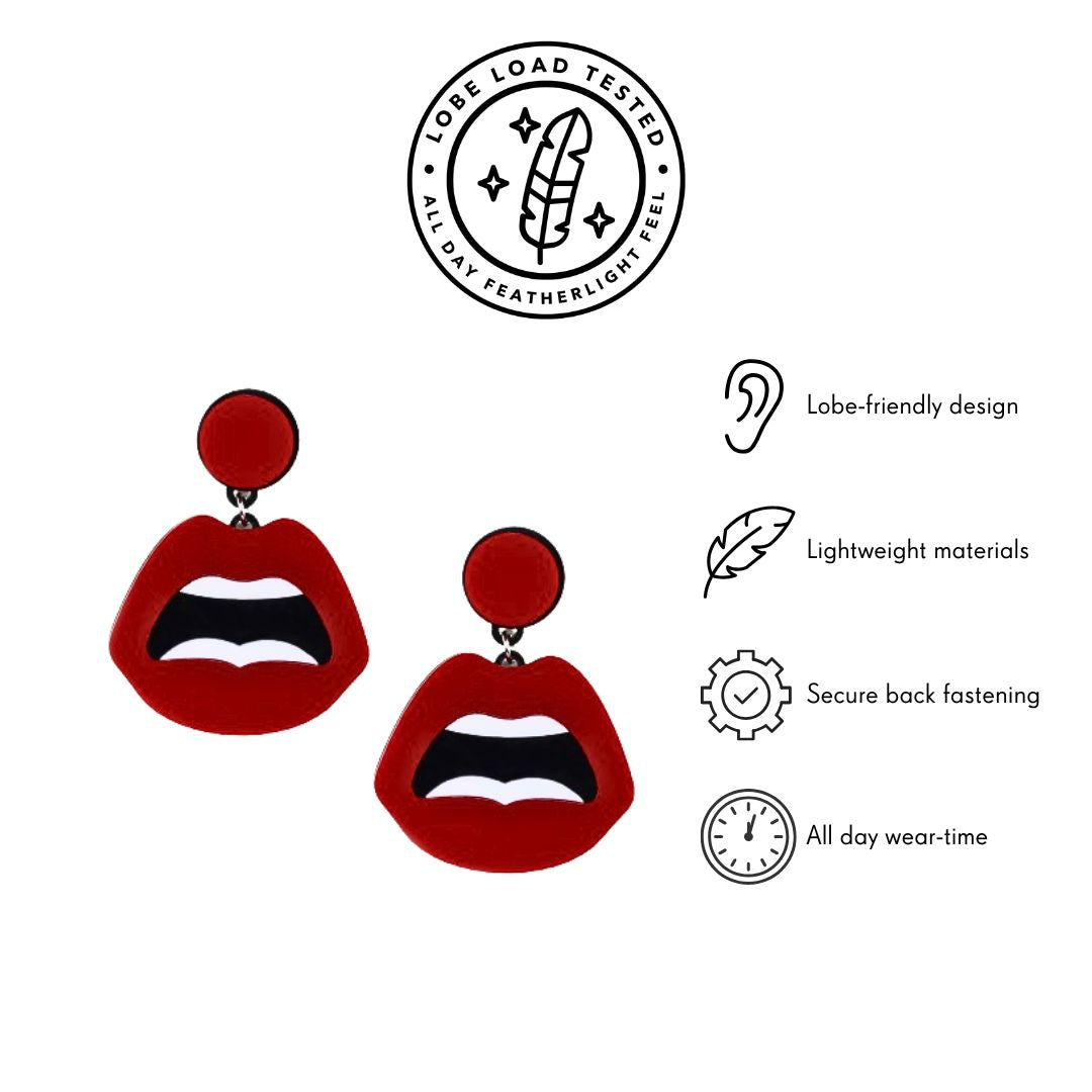 We uniquely ‘Lobe Load’ test every earring for lightest weight, lobe-friendly design and secure back fastening; 3 essential ways we ensure you can feel confident of an all day featherlight feel each time you wear them. Say goodbye to ripping out painful earrings midway through that big party, work event or wedding. Because there’s nothing cheering about painful earrings (which is why we won’t sell them!).