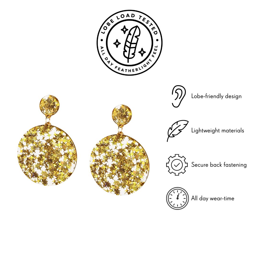 Want to stand out from the crowd? Put on the glitz with this lighter than air pair. Light up a daytime tee or up the sparkle stakes with these stars in your ears. Party pizazz personified, they'll put a spin in your step and a glint in your ear.